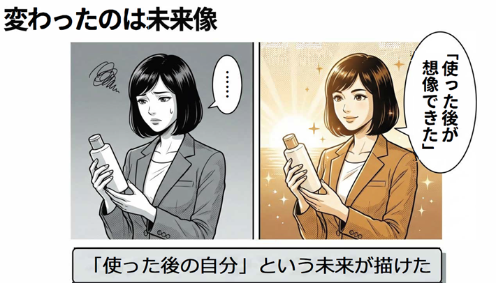 評価を動かすのは商品そのものではなく、その商品によって手に入る「未来の自分」が見えることです。