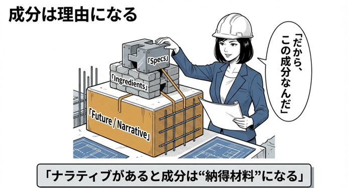 成分が生きるかどうかは、ナラティブ設計にかかっています。