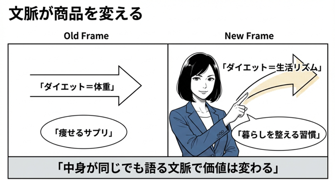 同じ商品でも、「何のための存在か」という文脈が変わると、価値は別物になります。