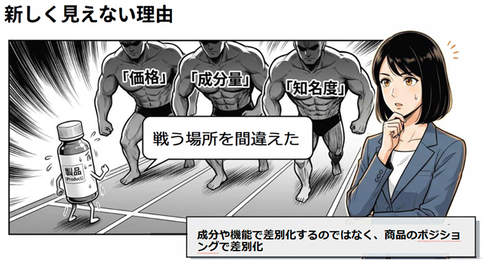 「商品がどう違うか」ではなく、「違う存在としてどう見られるか」を設計することです。