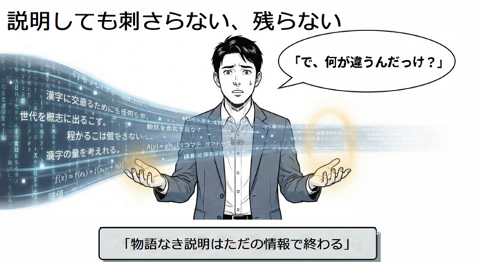 物語のない説明はその場で消えてしまいます。