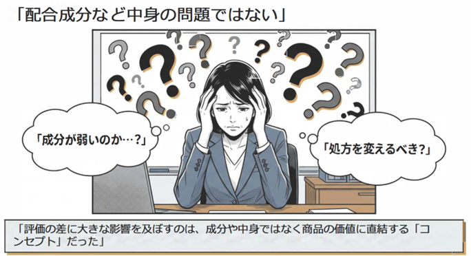 評価が伸びないと、多くの企業は成分や処方を疑います。