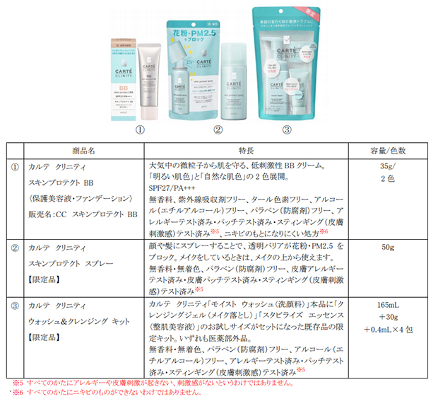 株式会社コーセーは、季節や体調の変化に敏感な肌に向けた低刺激性スキンケアブランド『カルテ クリニティ』から、花粉・ちりなど、大気中の微粒子から肌を守り、快適な肌環境をサポートする新製品と限定品(3 品……