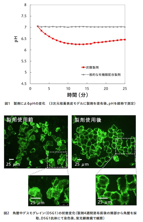 花王株式会社 スキンケア研究所は、微細化した炭酸によって肌が持続的に弱酸性に保たれると、角層中の接着因子デスモグレインの分解が促進され、角層のターンオーバーが正常化し、肌がなめらかになる可能性があるこ……