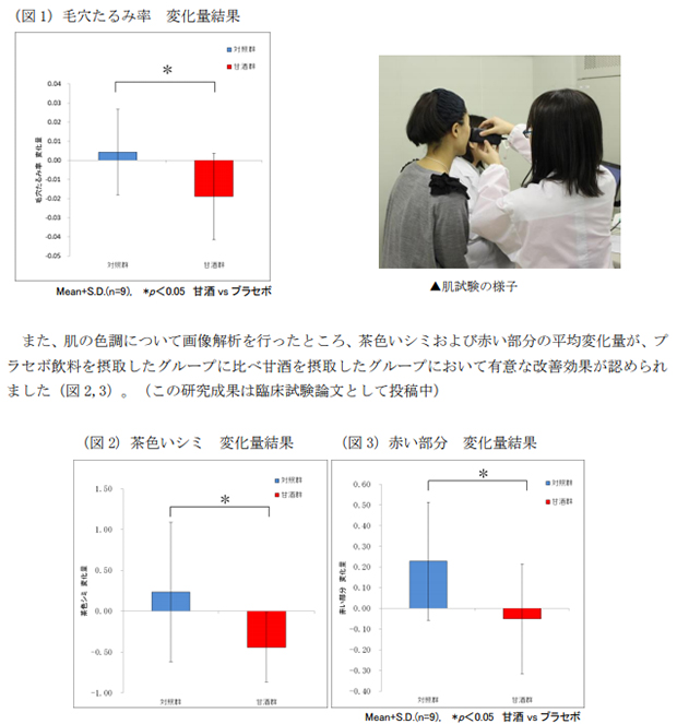 『酒粕と米麹を含む甘酒』の継続摂取で毛穴のたるみと肌の色調が改善/森永製菓