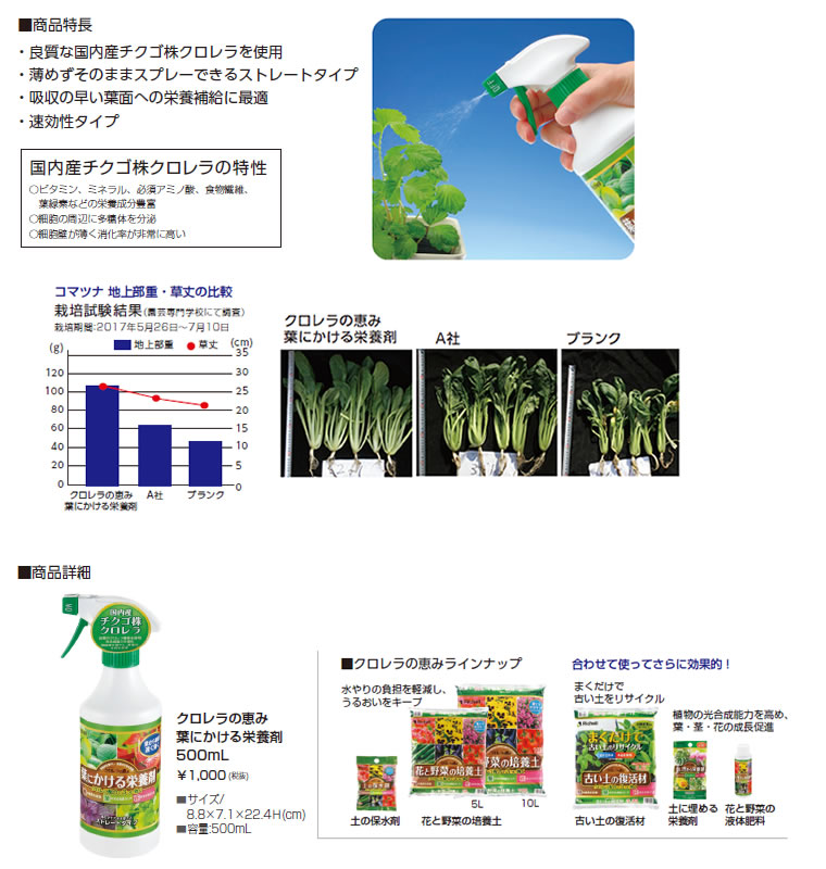クロレラの恵み 葉にかける栄養剤を発売/リッチェル