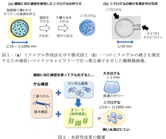 細胞の用な鋳型でゼリーを作ると硬化。食品・化粧品で応用/東京農工大
