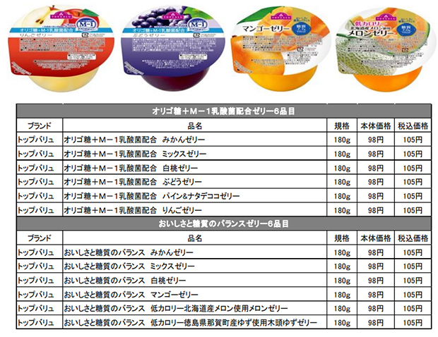 イオン株式会社は、3月21日(水)、トップバリュゼリーを、おいしさ・健康・糖質にこだわった商品内容に一新し、全国のグループ最大1,800店舗にて、合計12品目を本格的に発売します。 オリゴ糖+M-1……