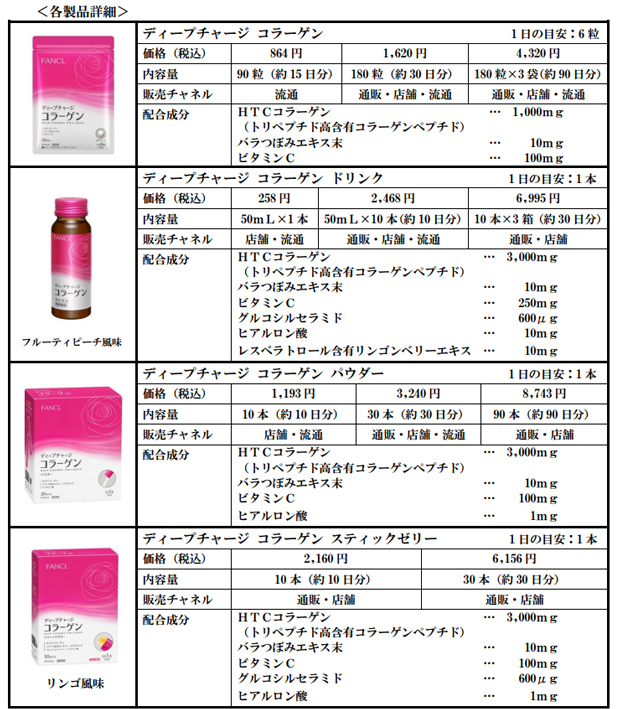 株式会社ファンケルは 2018 年 3 月 20 日(火)から、「ディープチャージ コラーゲン」シリーズ(価格:258 円~8,743 円<税込>)を通信販売と直営店舗、一般流通で新たに発……