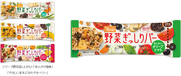 キユーピー株式会社は、野菜の自然なおいしさを楽しめるバータイプのスナック「ヴェルデ※ 野菜ぎっしりバー」から、オリーブ・トマト・バジルのイタリアンテイストが味わえる「あじわいオリーブトマト」を新発売し……