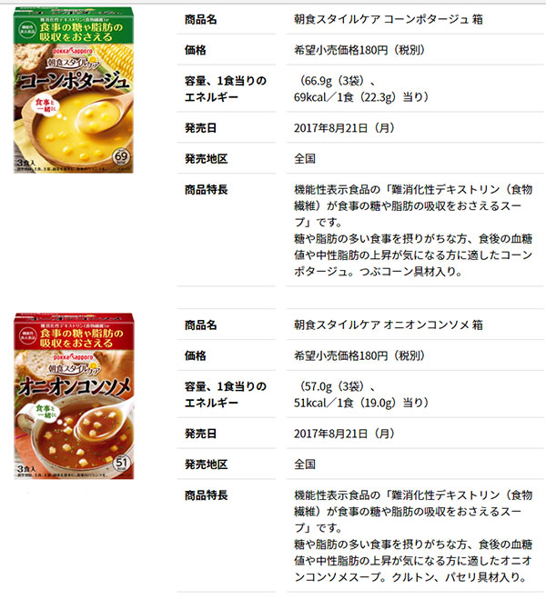 ポッカサッポロフード&ビバレッジ株式会社は、「難消化性デキストリン(食物繊維)が食事の糖や脂肪の吸収をおさえる」機能性表示食品のスープ『朝食スタイルケア コーンポタージュ 箱』と『朝食スタイルケアオニ……