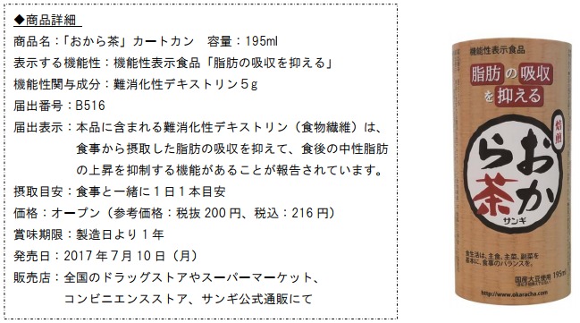 ~脂肪の吸収を抑える~機能性表示食品「おから茶」カートカンを発売/サンギ