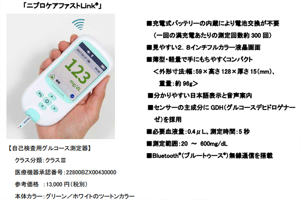 ニプロ株式会社は、血糖自己測定器「ニプロケアファストLink®(NIPROCAREFAST Link®)」を2017年5月18日より販売開始しました。 糖尿病の予防および進行抑制のた……