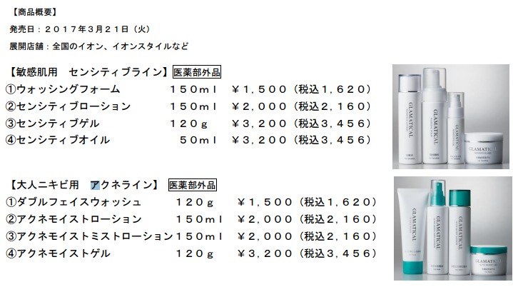 イオン株式会社は、3月21日(火)に、お肌の悩みに合わせてお使いいただける、スキンケアシリーズ「トップバリュ セレクト GLAMATICAL(グラマティカル)」より、新たに2ラインを全国のイオンで発売……