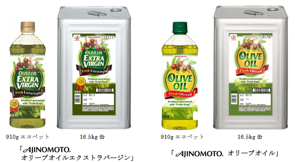 株式会社J-オイルミルズは、業務用油脂商品「AJINOMOTO オリーブオイルエクストラバージン」910g エコペット、16.5kg 缶、「AJINOMOTO オリーブオイル」910g エコペット、1……