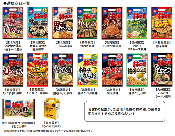 亀田製菓株式会社は、「亀田の柿の種」の発売50周年を記念し、ご当地の限定の「亀田の柿の種」のNo.1をWEB投票で決める『「亀田の柿の種」ご当地選手権!キャンペーン』を開催し、No.1になった商品を期……