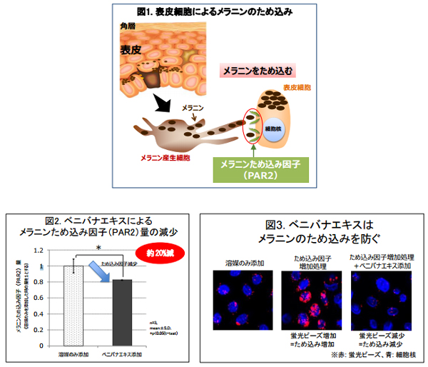 ポーラ・オルビスグループのポーラ化成工業株式会社は、表皮細胞のメラニンの“ため込み”を、ベニバナエキス(キク科ベニバナの花から抽出)が防ぐことを見出しました。表皮細胞にメラニン……