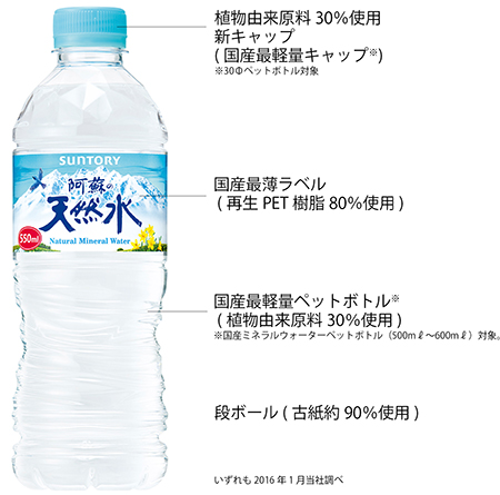 サントリー食品インターナショナル株式会社は、植物由来原料を30%使用した飲料用ペットボトルキャップを世界で初めて※1導入します。今春、九州熊本工場(熊本県上益城郡)の「サントリー 阿蘇の天然水」(……