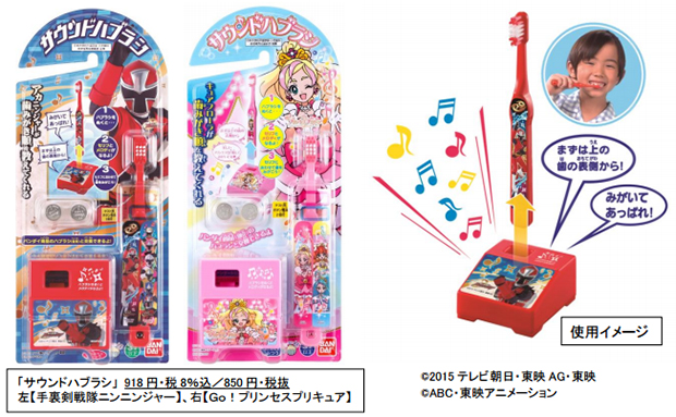 株式会社バンダイは、ハブラシを立てるスタンドから、子どもの歯みがきを応援するヒーロー・ヒロインの音声と、メロディが流れるハブラシ「サウンドハブラシ」(全 2 種、918 円・税8%込/850 円・税……