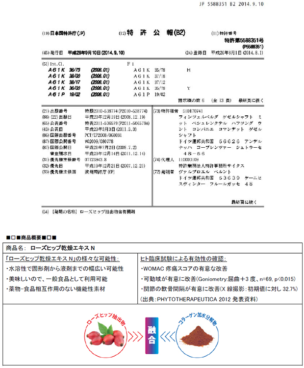 関節対応素材『ローズヒップ乾燥エキスN』国内特許取得/アスク薬品