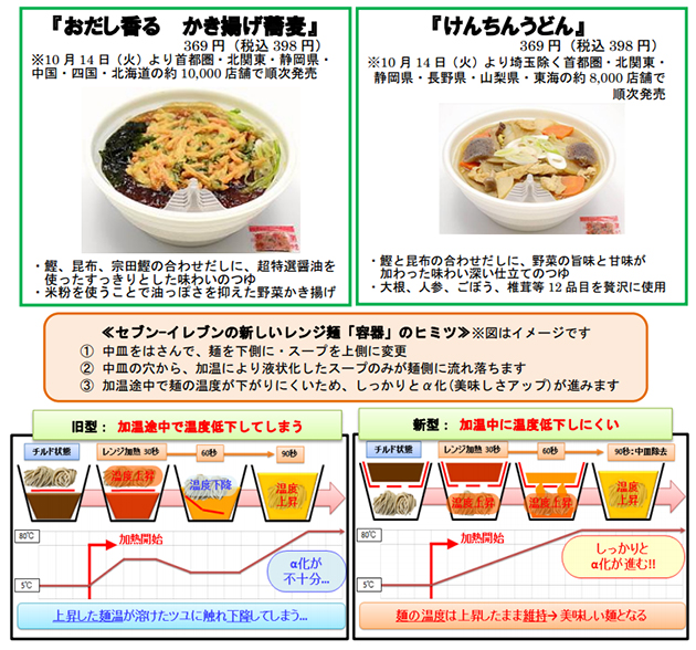 株式会社セブン-イレブン・ジャパンは、レンジ麺の品質向上を目指し、この度新たな専用容器を開発いたしました。10 月 14 日からの首都圏を皮切りに、全国にて順次販売を開始します。新容器により、麺の品質……