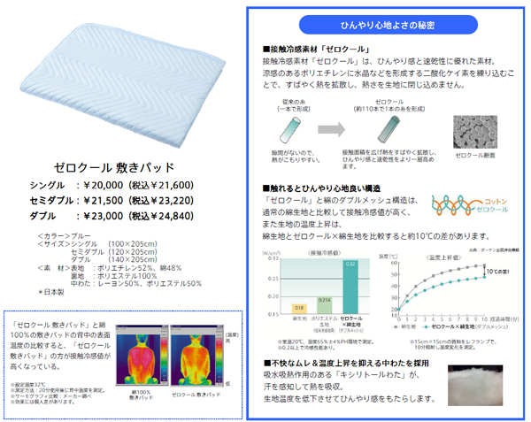 接触冷感と吸汗性に優れた「ゼロクール」素材『ゼロクール敷きパッド』発売/ポーラ