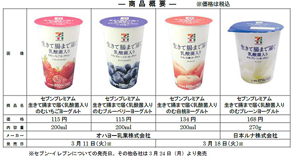 株式会社セブン&アイ・ホールディングスは、3 月11 日(火)より順次、PB「セブンプレミアム」の「のむヨーグルト」をリニューアルし、新たにセブンプレミアム 生きて腸まで届く乳酸菌入りのむヨーグルトシ……