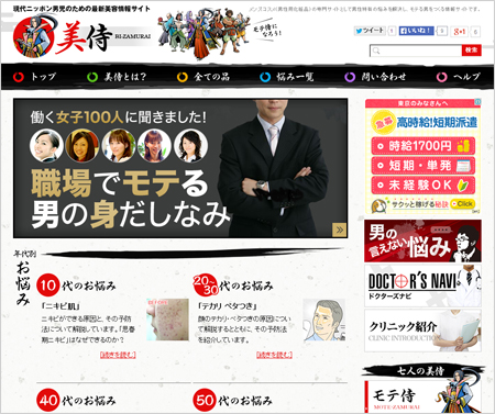 モテ男をつくる!男性用美容情報サイト「美侍(ビザムライ)」をオープン/全研本社