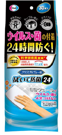エーザイ株式会社は、持続性防菌成分Etak®を配合したウエットクロス「クリスタルヴェール拭いて防菌24」(雑貨)を11月25日(月)に新発売します。「クリスタルヴェール拭いて防菌24」……