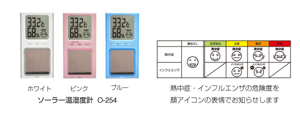 株式会社ドリテックは、熱中症とインフルエンザの危険度を顔アイコンで分かりやすく表示するソーラー温湿度計(品番:O-254)を12月上旬より発売します。ソーラー温湿度計は、電池交換不要のソーラー発電のデ……