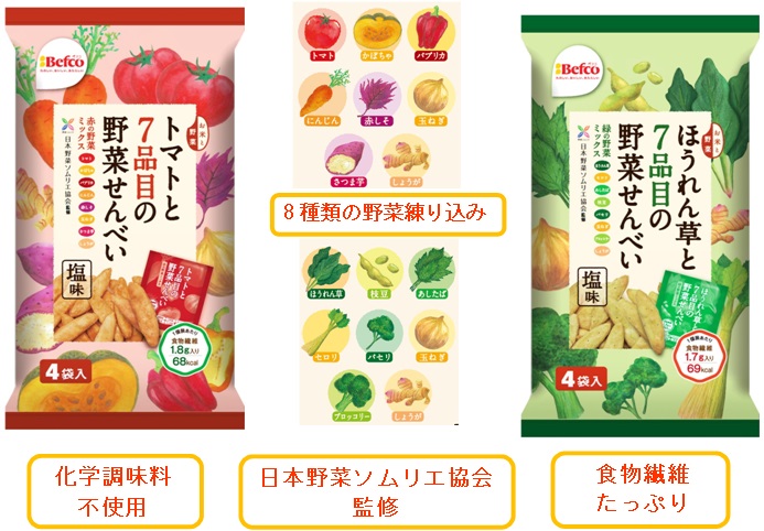 日本野菜ソムリエ協会監修 トマトと7品目・ほうれん草と7品目の野菜せんべいを発売/栗山米菓