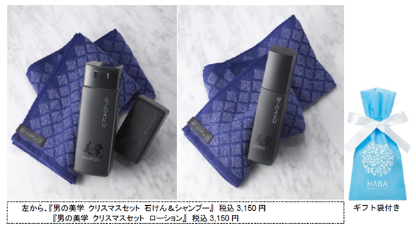 株式会社ハーバー研究所の100%子会社、男の美学株式会社所は、男性向け化粧品セット『男の美学 クリスマスセット 石けん&シャンプー』『男の美学 クリスマスセット ローション』の2タイプを、2013年1……