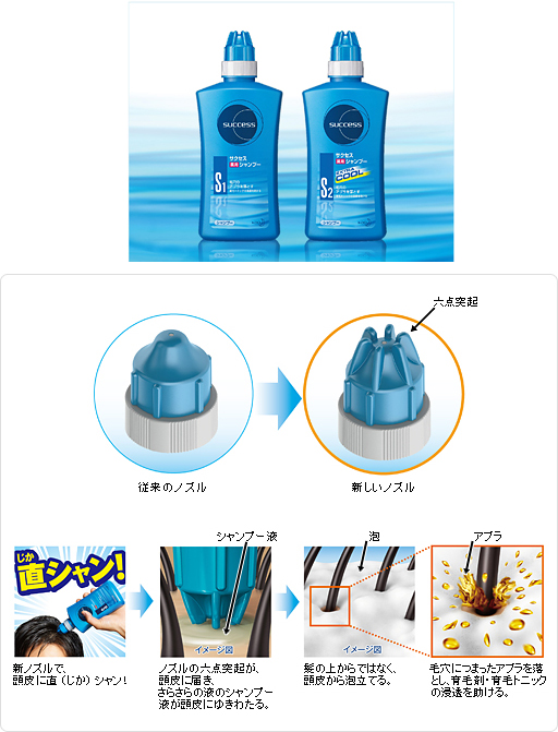 新ノズルでシャンプー液を頭皮に「サクセス薬用シャンプー」改良発売/花王