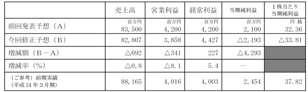平成25 年3月期において、下記のとおり特別損失を計上することに伴い、平成24 年11 月2日の決算発表時に公表した平成25 年3月期(平成24 年4月1日~平成25 年3月31 日)の業績予想を下記……