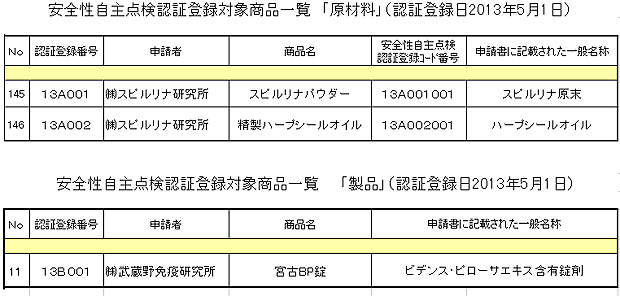 公益財団法人日本健康・栄養食品協会は、「健康食品の安全性自主点検認証制度」に基づき、審査基準に適合した以下の原材料並びに製品を平成25年5月1日付で認証登録しましたのでお知らせします。今回認証登録を……