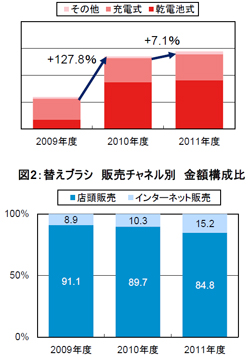 ジーエフケー マーケティングサービス ジャパン株式会社(東京:中野区)は、家電量販店、総合量販店、およびインターネットにおけるデンタルケア製品の販売動向を発表した。【概要】 ・2010年度に2倍に拡……