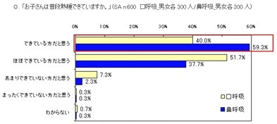 グラクソ・スミスクライン株式会社(本社:東京都渋谷区)では、小学校3年生~6年生の子どもを持つ母親600人(子どもが鼻呼吸であると感じている母親300人、子どもが口呼吸であると感じている母親:300人……