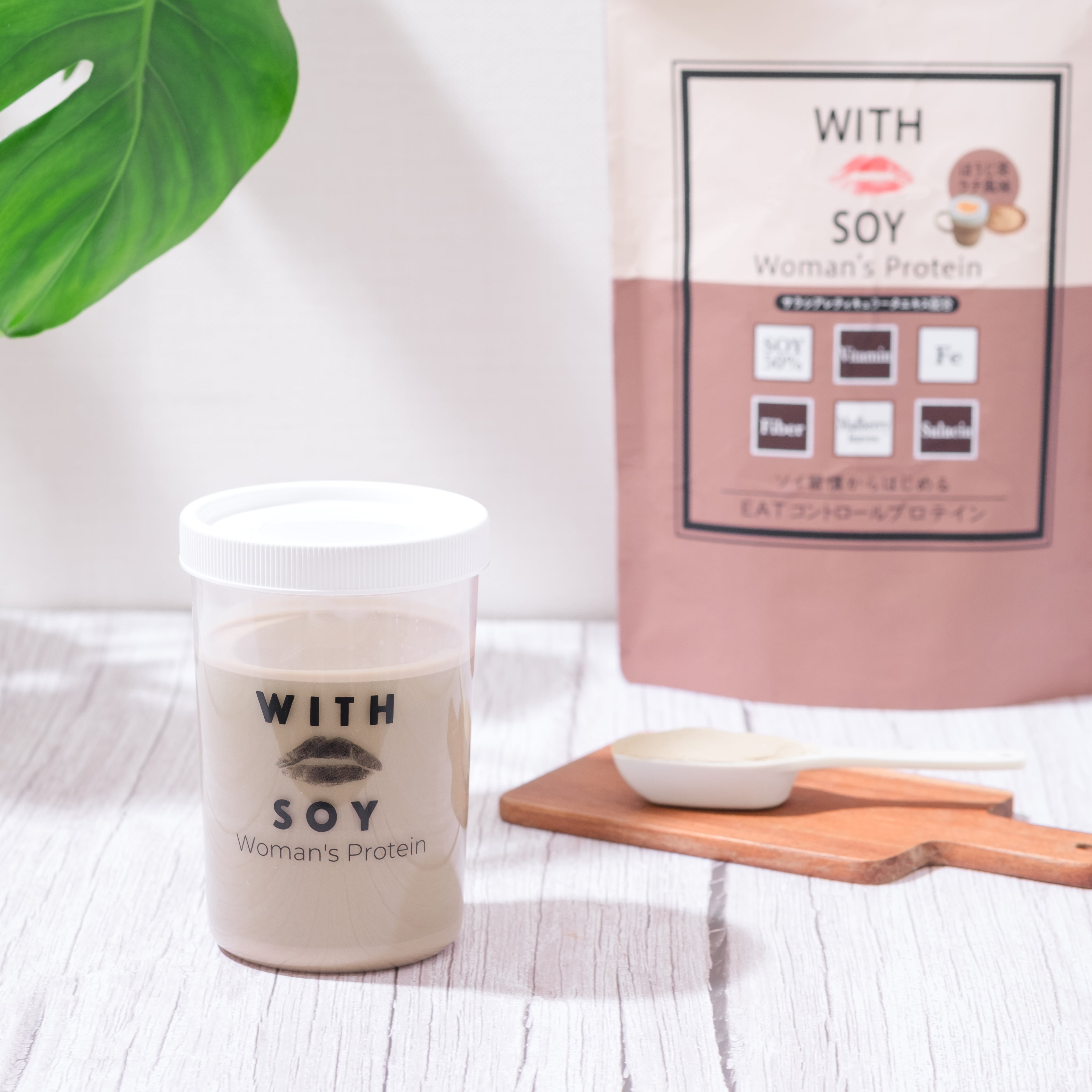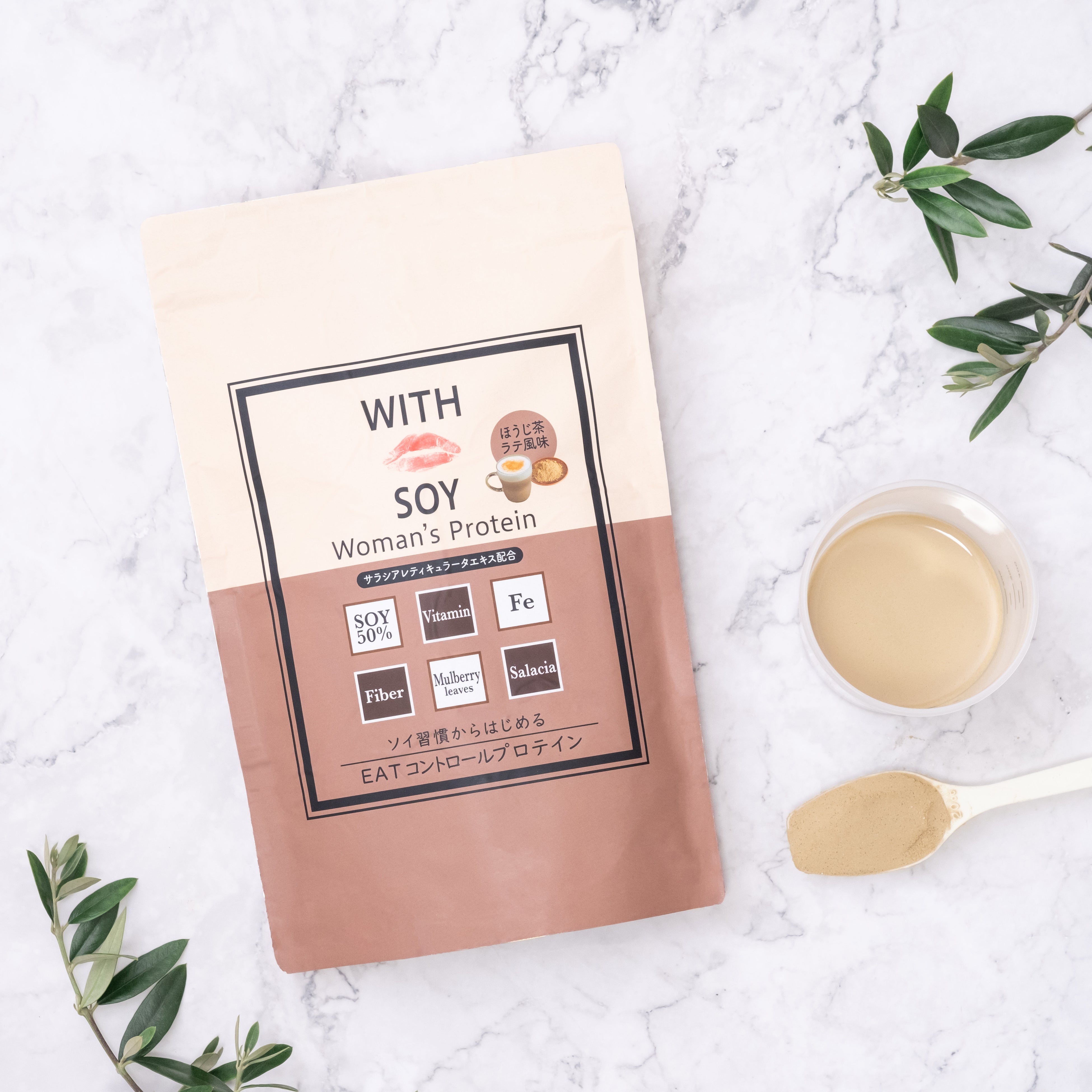 EATコントロールソイプロテイン(ほうじ茶ラテ味)は、甘いもの欲や食 欲を無理せずコントロールしながら綺麗になりたいという女性に向けて独自開発されたソイプロテインです。