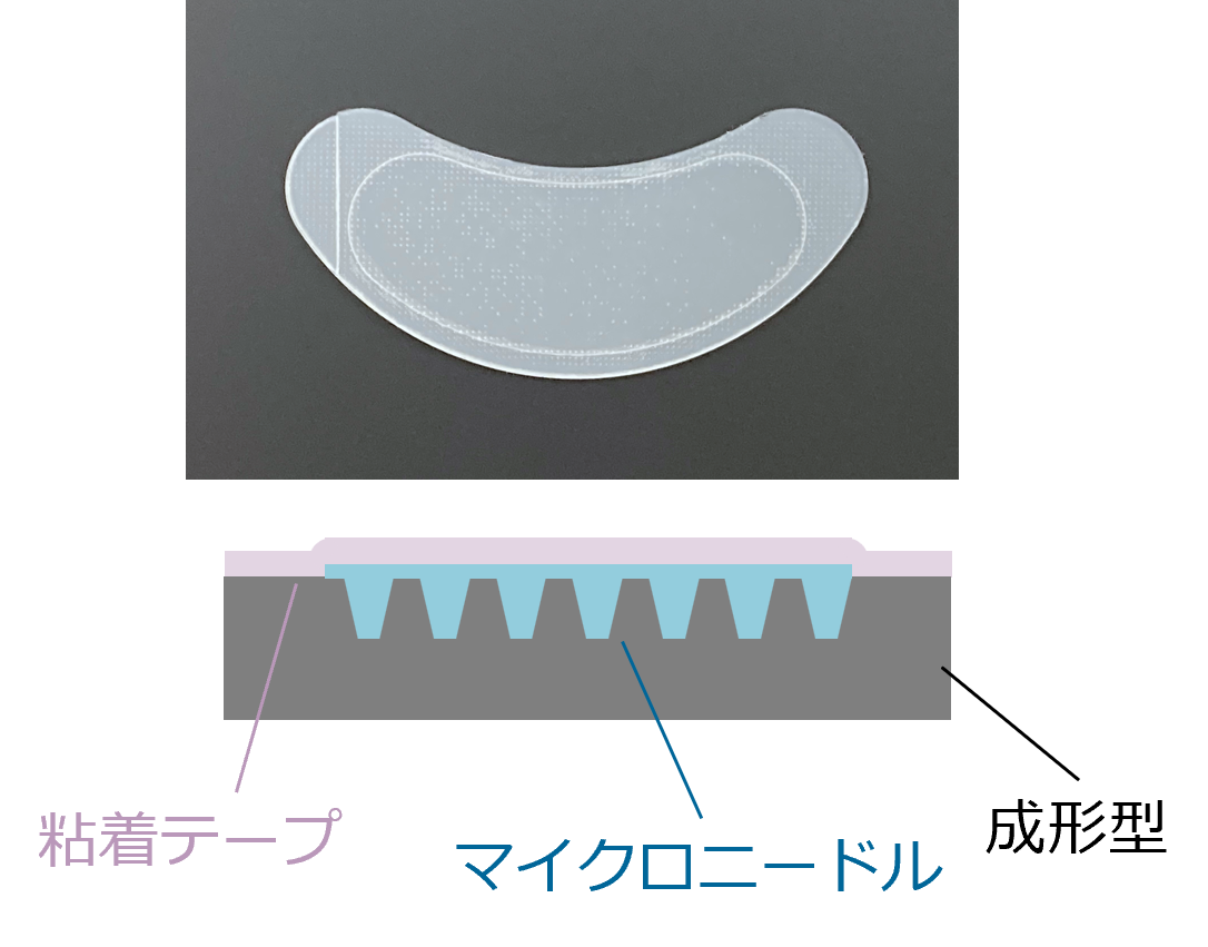 *化粧品用溶解性マイクロニードルパッチ:マイクロニードル(美容成分を微細なニードル(針)形状に成形したもの)をパッチ状に加工したスキンケア化粧品