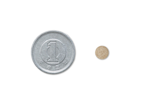 ペットに優しい小粒サイズ。直径6mmのタブレットは、1円玉(20mm)と比べても圧倒的に小さく、与えやすい形状です。