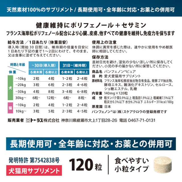 ペットのサプリメント市場品揃えNo.1のトーラス株式会社は、犬猫の心臓・循環器の健康維持を目的とした新サプリメント「パンフェノン®ピュア」を2025年10月に発売しました。