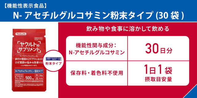ヤクルトヘルスフーズ株式会社は、「ヤクルトのサプリメント」ブランドから、「N-アセチルグルコサミン粉末タイプ(30袋)」を1月5日(月)よりAmazon.co.jpにて発売します。