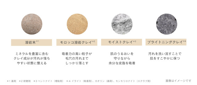 吸着力に優れたクレイや古い角質を取り除くクレイなど、役割の異なる4種のクレイ(※2)を厳選配合。不要な汚れを吸着して洗い流すことで、すこやかで明るい印象の肌に導きます。