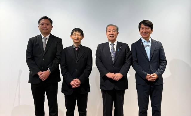 (左から)西ノ島町役場 産業振興課 水産係、国立研究開発法人 水産大学校 教授、行政関係者、株式会社たかくら新産業 代表取締役