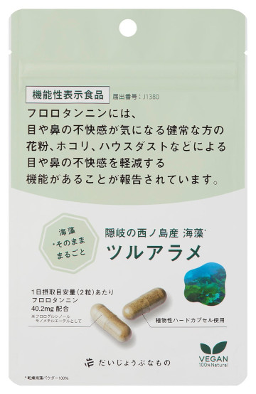 こうした取り組みの結果、西ノ島産ツルアラメを原料とした同商品は、花粉症による目や鼻の不快感軽減に寄与する機能性表示食品として、消費者庁への届出が受理されるに至りました。