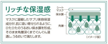 従来のシートマスクが繊維から染み出した美容液が肌に触れるのに対し、同製品は超極細ファイバーにうるおいが吸着して保水膜を形成。シートと肌の間にできる“うるおい保水膜”が肌に直接密着し、美容保湿成分を角質層まで効率的に届けます。シートが肌に吸い付くようにフィットするため、まるで一体化するような高い密着感を実現しました。