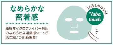 髪の毛よりも、絹糸よりも細い超極細マイクロファイバーを使用しました。1本1本の繊維自体が濡れているため、まるで生湯葉のような、とろんとやわらかく、なめらかな肌触りを実現。シートが乾きにくく、肌の凹凸やフェイスラインのカーブにぴったり密着します。