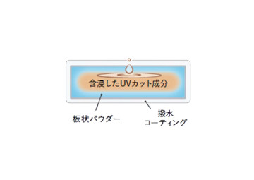| ① 「スーパーUVエアリーパウダー」で透明感のある仕上がりに 独自原料配合の「スーパーUVエアリーパウダー」により、高いUVカット力と透明感のある仕上がりを同時に実現。UVカット効果が高いほどありがちな厚塗りや白浮き感を払拭し、肌のアラをぼかしてクリアな肌に仕上げます。板状パウダーにUVカット成分(紫外線吸収剤)をしみ込ませ、撥水性成分でコーティングしているので、透明感のある仕上がりが⾧時間続きます。 |
